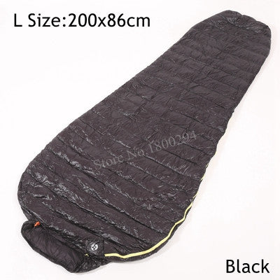 Aegismax Ultralight Lengthened Mummy Sleeping Bag White Goose Down Outdoor Camping Sewn Through Black&Green 200x80cm